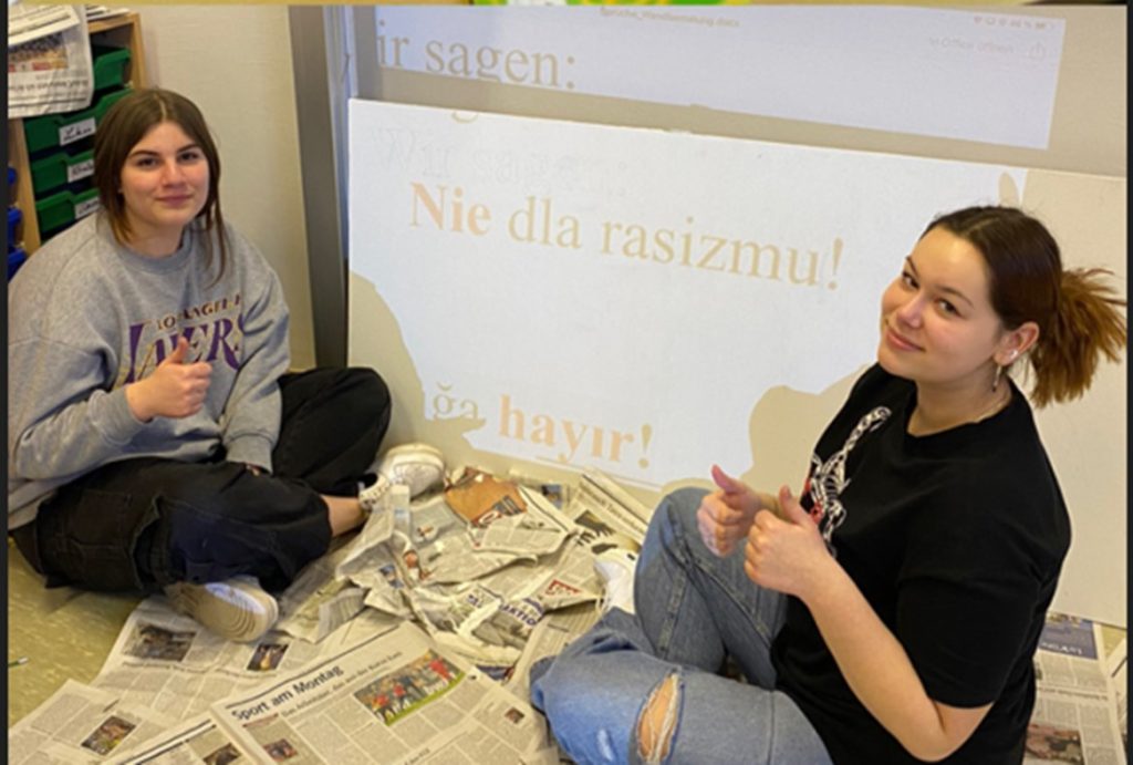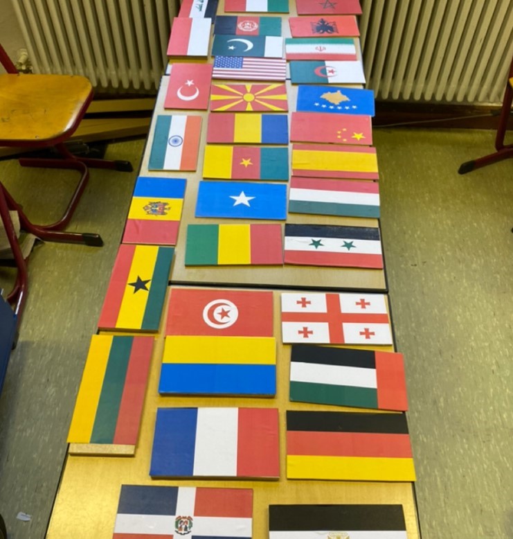 Grundsätzlich wird unser Schulzeichen, der Ebertpark Baum, genutzt und mit den Flaggen der Herkunftsländer unserer Schüler:innen ergänzt. Zudem wird in den Sprachen unserer Schüler:innen „Nein zu Rassismus“ an den Wänden festgehalten. Beide Ideen sind als wachsendes Projekt zu verstehen und werden mit Flaggen und Sprachen der Nationen ergänzt, die noch nicht Teil unserer Schulgemeinschaft sind. Die Umsetzung des Projektes wird durch die Landeszentrale für politische Bildung Rheinland-Pfalz unterstützt.